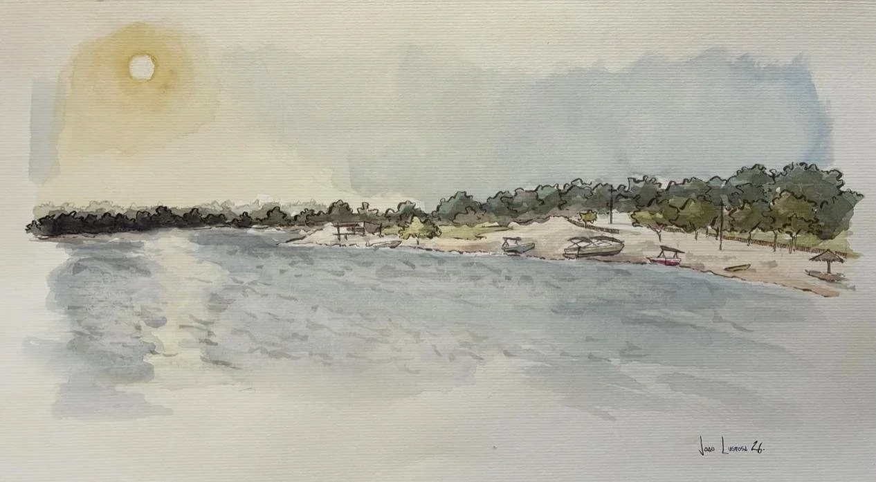 O último por do sol de 2025 visto de um condomínio de casas em volta da lagoa. Ao redor, todos aproveitam a tarde aguardando pela renovação da vida.